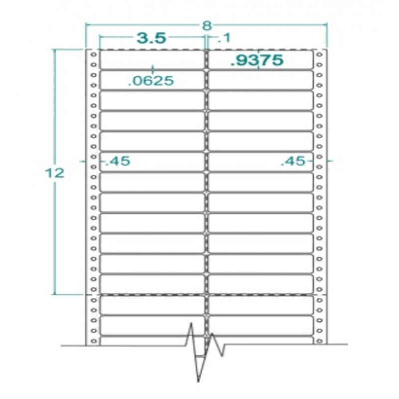 White Pinfeed Label, 3 1/2 x 15/16, 2 across, repeat size 1, carrier size 6, qty 10,000