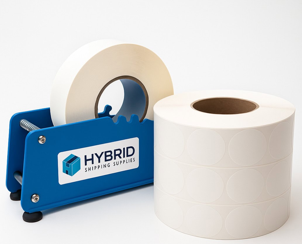 Wafer Seal Starter Kit – Includes a Manual Tab Dispenser and Three Rolls of 1″ Translucent Wafer Seals No Perferation (Now comes with 4th roll free!!)